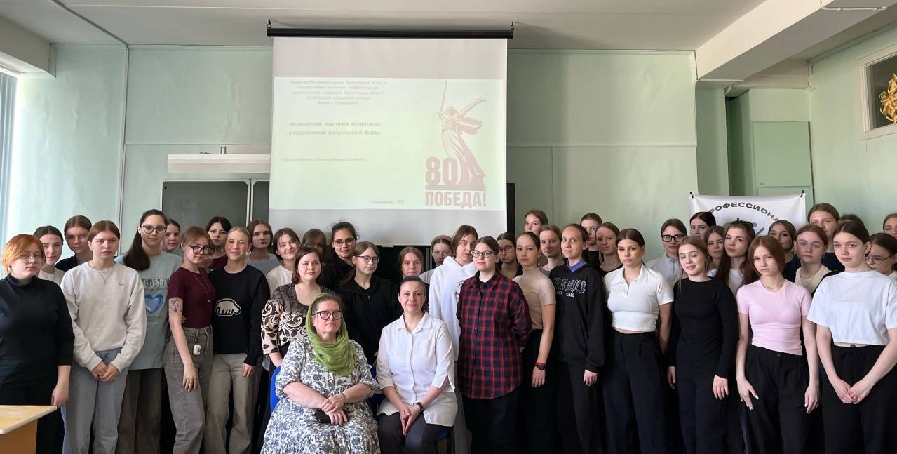 Для студентов групп 1-4 и 1-5 филиала АМК сегодня состоялся классный час, на котором ребята узнали о жизни и труде медицинских работников Молотовска в годы Великой Отечественной войны.